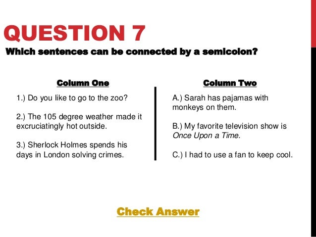 'when i pack for school, i make sure i have my pens, pencils, lunch box, pe kit and bus money.' however, if the list is more complicated semicolons may be needed to make the list clear for. Went swimming, climbing, and horseback riding; And ate at a lot of great restaurants. This is where i think most of the authors who overdosed on semicolons got into trouble. When to use a semicolon versus a period. Not sure when to use a semicolon versus a period or comma? But really, if you're reading this blog post, you probably don't need much convincing. Proper semicolon use can make your work sound more sophisticated and give you the opportunity to play with new sentence structures and clause lengths. The semicolon generally connects two complete sentences avoid overuse of the semicolon. Using a semicolon shows a sophisticated understanding of grammar. Use both colons and semicolons sparingly. Semicolons separate items in a complex list. By econtent pro on jan 23, 2017.